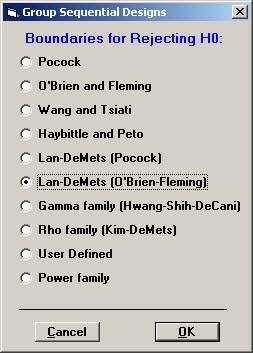 Choose Lan-DeMets(O’Brien-Fleming)from the Boundaries for Rejecting H0: and click OK.