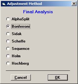 Choose Bonferroni as the adjustment method.   After 10000 simulations the Disjunctive Power is estimated to 0.6195. The probability to a get significance in the individual tests are 0.4604, 0.3683, and 0.0863, respectively.     If instead one chooses to test in sequence, starting with the non-fatal MI, then non-fatal stroke, and finally re-vascularisation, i.e. in the order of expected number of events, the disjunctive power will be marginally higher but the individual significance probabilities somewhat higher, 0.6276, 0.3914, and 0.0979 (conditionally that the pre-ceding test is significant).    |